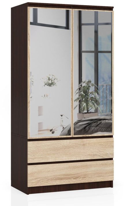 Szafa S 90 cm z dwoma drzwiami, dwoma szufladami i dwoma lustrami to wyjątkowa propozycja w naszej ofercie. Mebel wyróżnia
