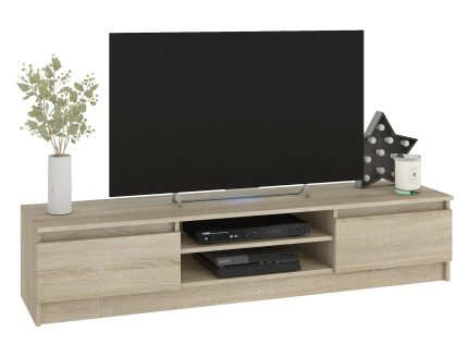 Nowoczesny stolik pod telewizor, który zachwyca pięknym wykończeniem i trwałością. Rozwiązanie świetnie sprawdzi się w salonach wykończonych klasycznie i nieco