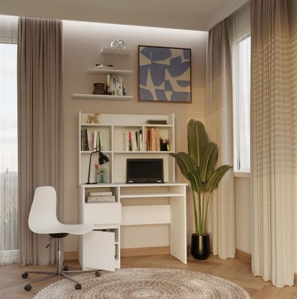 Małe białe biurko wolnostojące STAR to propozycja przeznaczona przede wszystkim do pokojów dziecięcych i młodzieżowych. Funkcjonalny i praktyczny mebel, którego