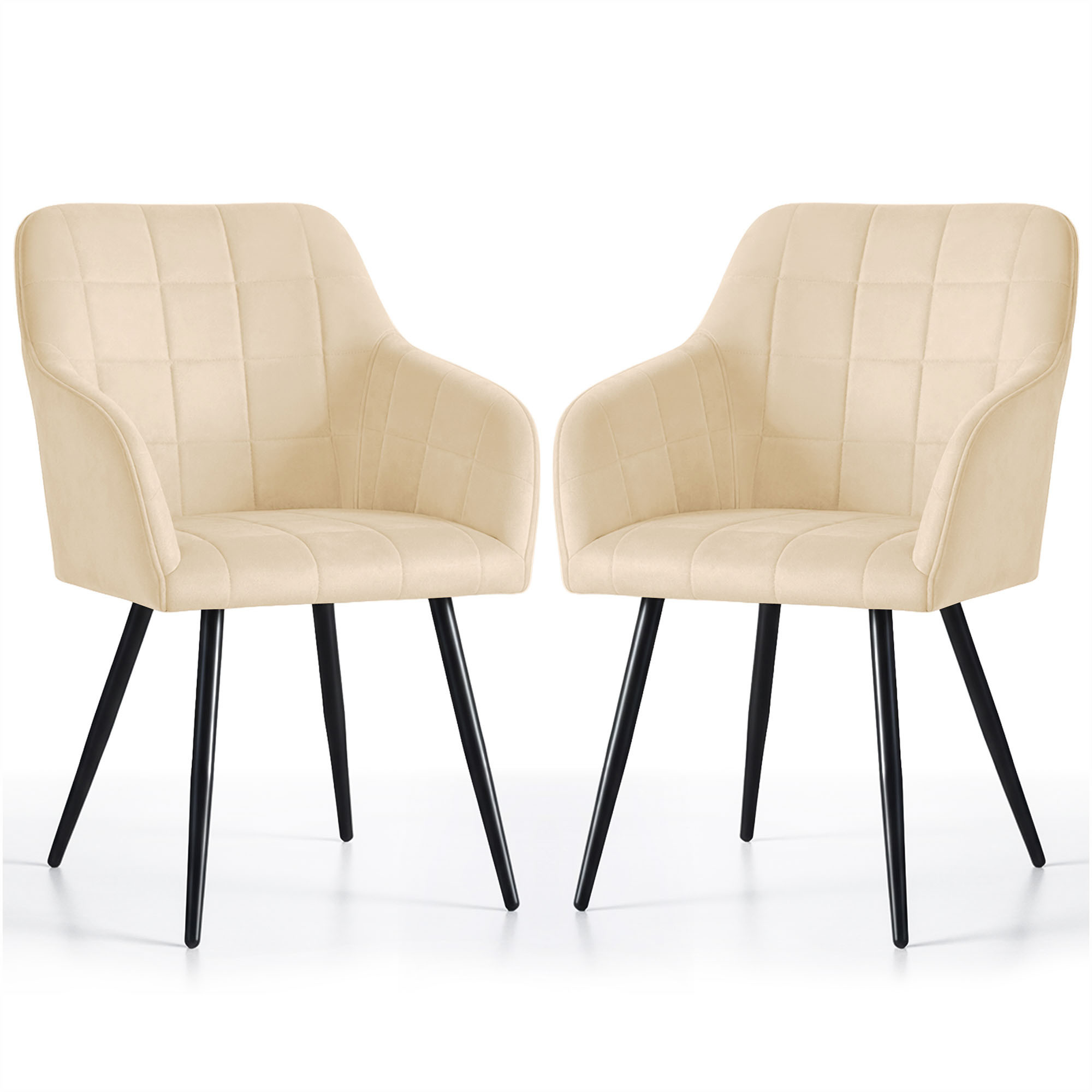 2x Krzesło tapicerowane z przeszyciami kwadratowymi Kremowe LUXANO Czarne nogi tkanina Lumos