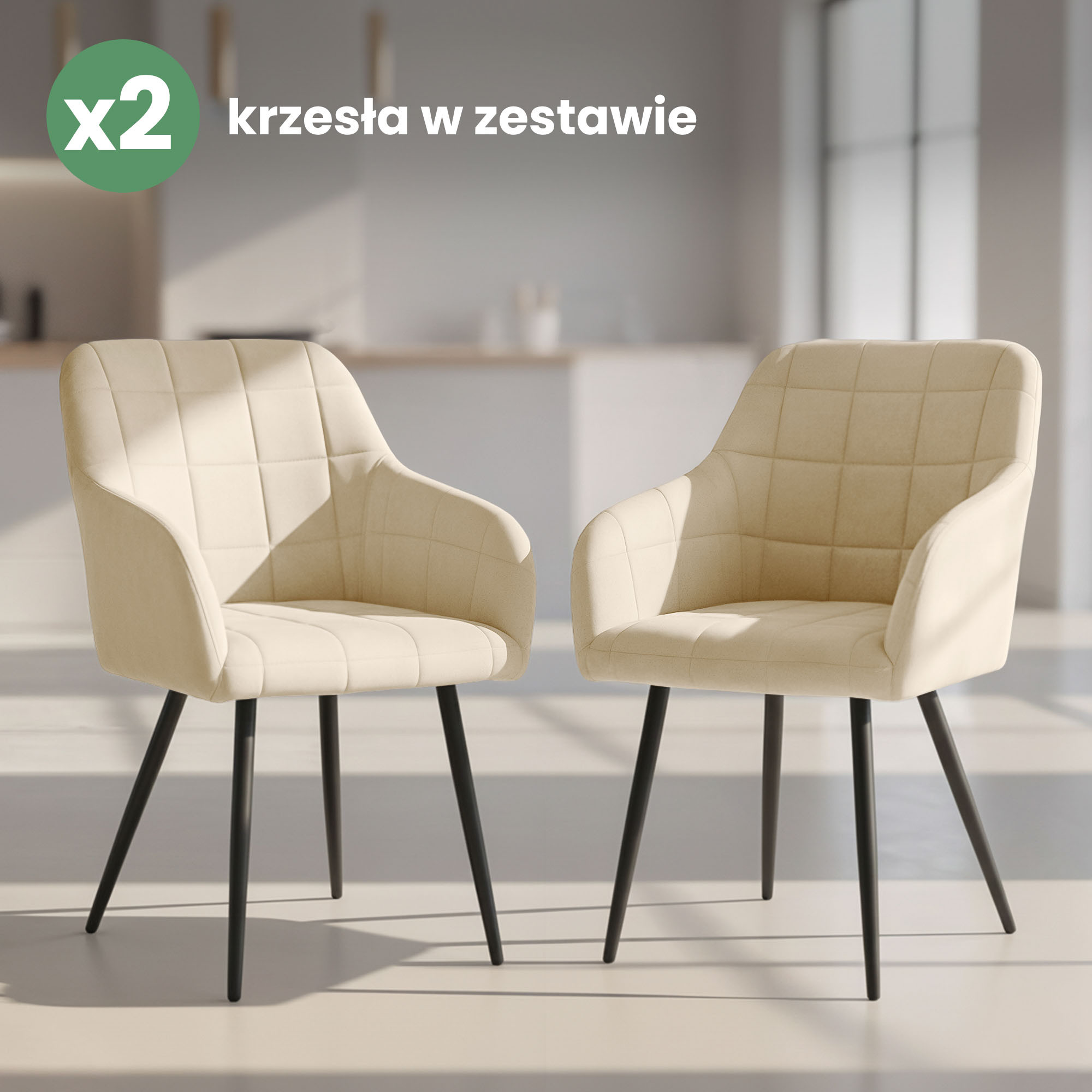 2x Krzesło tapicerowane z przeszyciami kwadratowymi Beżowe LUXANO Czarne nogi