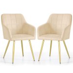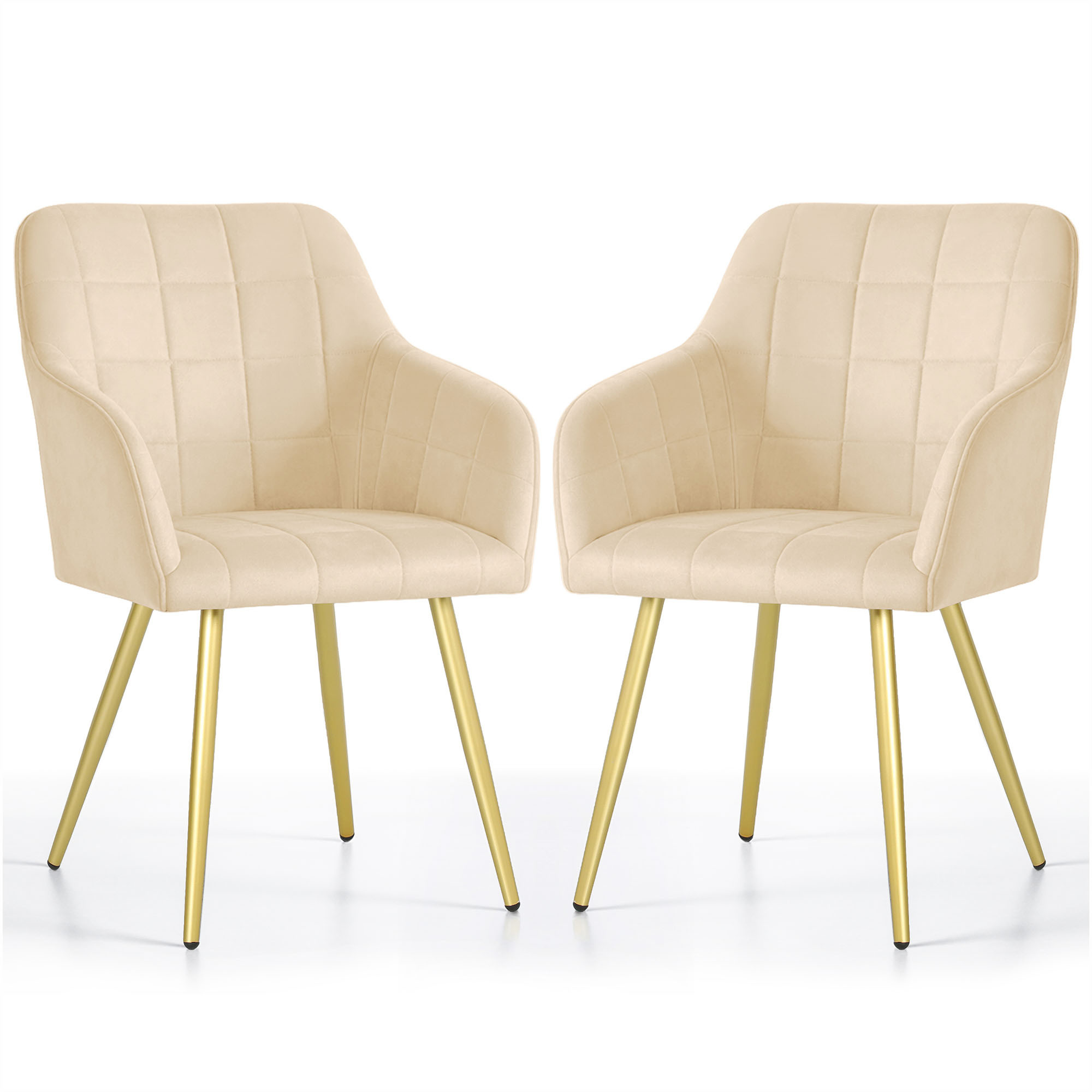 2x Krzesło tapicerowane z przeszyciami kwadratowymi Beżowe LUXANO Złote nogi