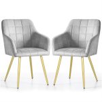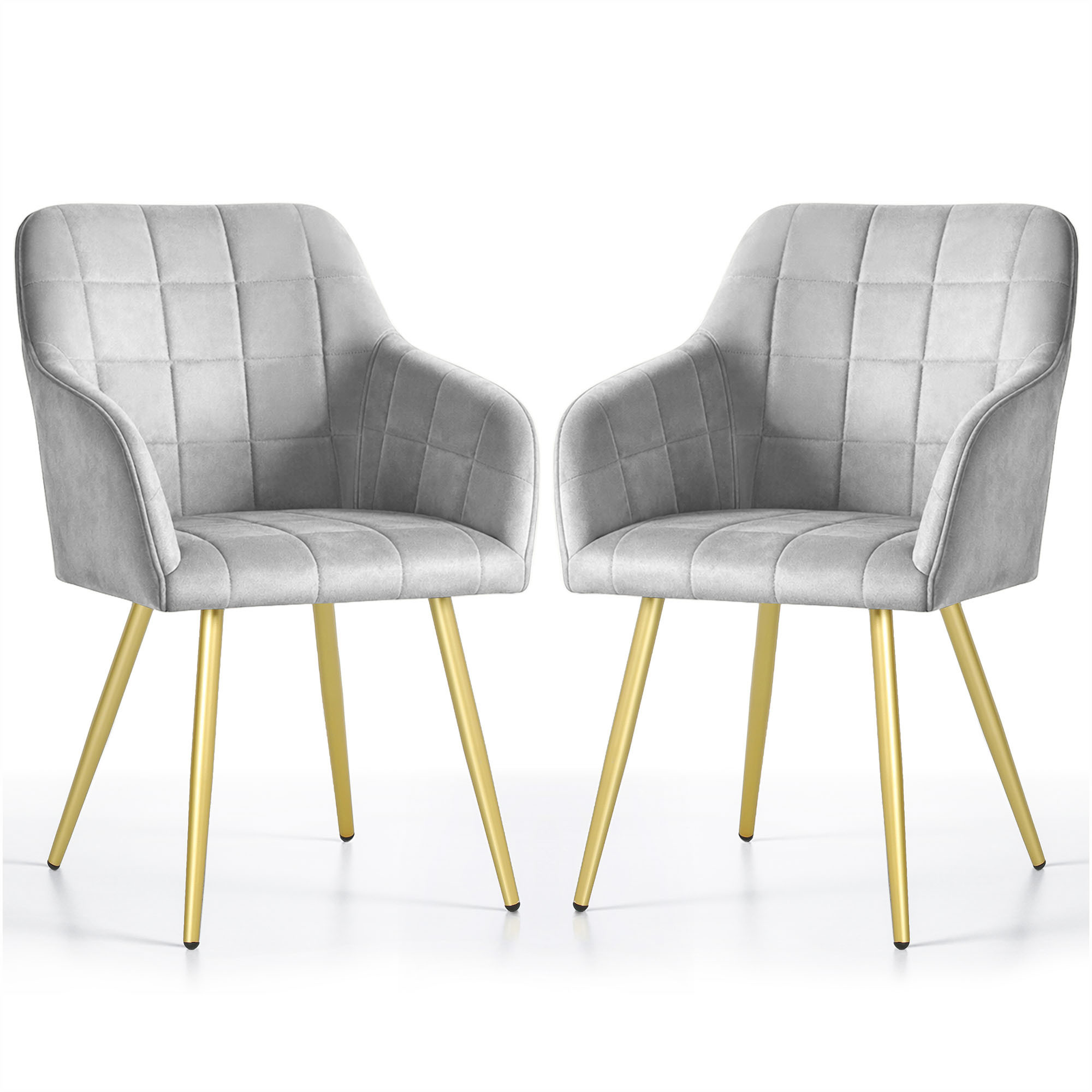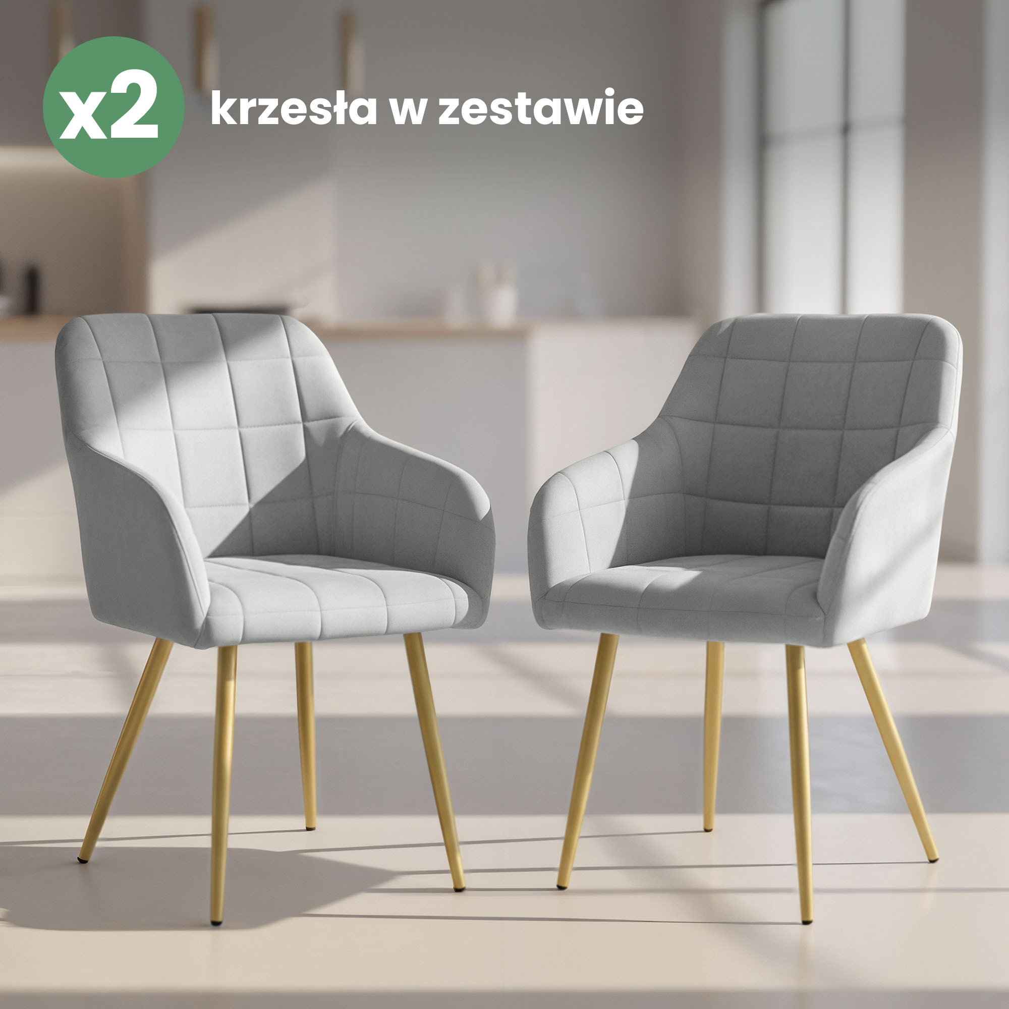 2x Krzesło tapicerowane z przeszyciami kwadratowymi Szare LUXANO Złote nogi