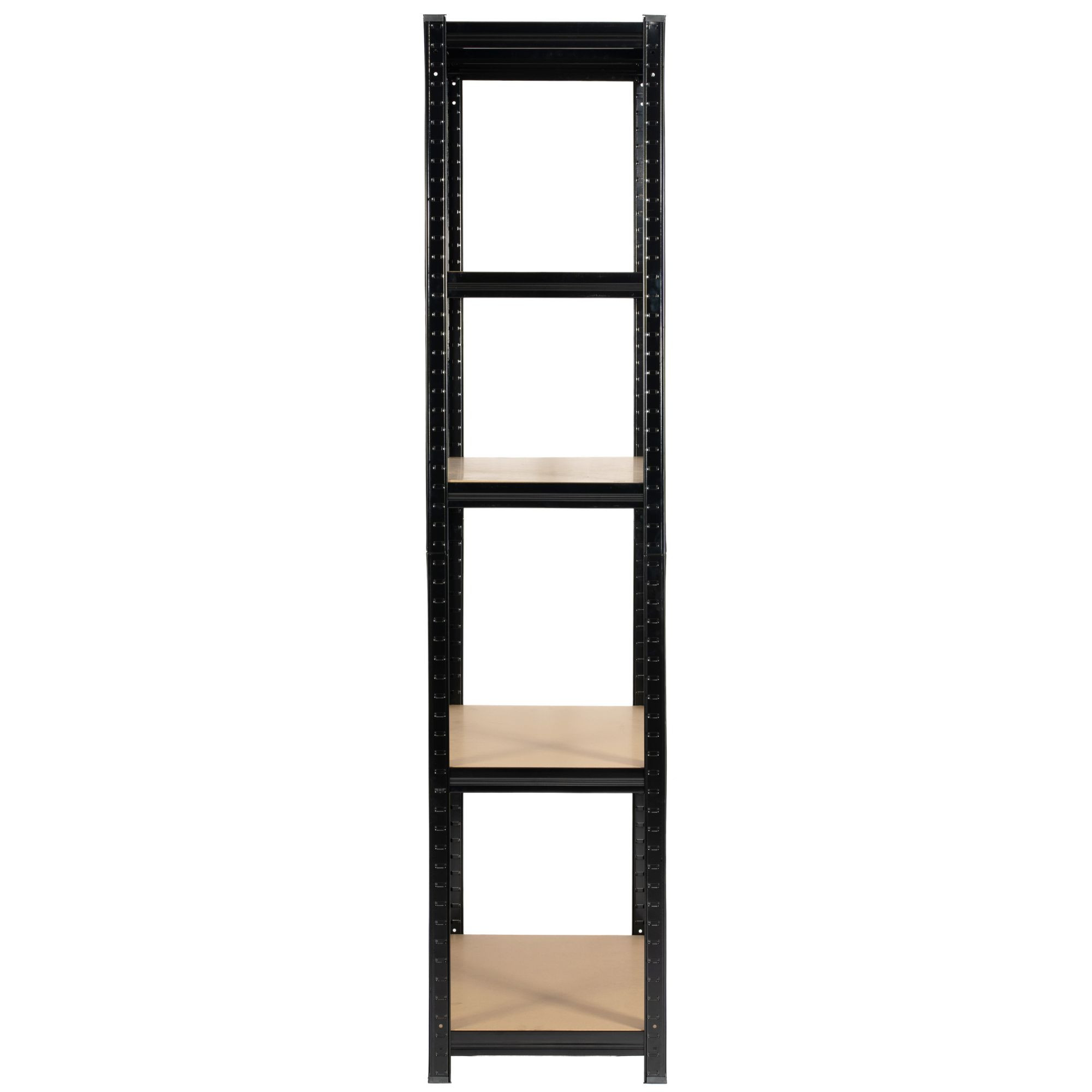 Zestaw regałów metalowy idealnie pasujący do przechowywania. Nadaje się do garażu, warsztatu, komórki lokatorskiej, jak również do pomieszczeń gospodarczych. Regał w kolorze czarnym o szerokości 90 cm oraz 180 wysokości. Pólki wykonane z wytrzymałej płyty MDF. Nośność na półkę wynosi 175kg.