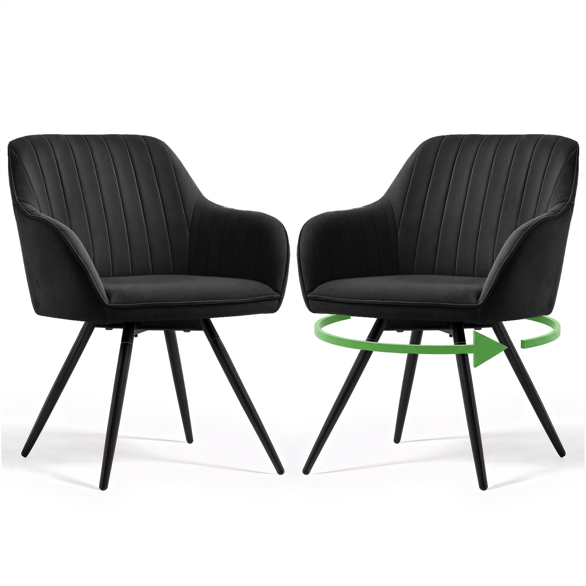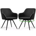 2x Welurowe krzesło obrotowe z przeszyciami Czarne TURNO Czarne nogi