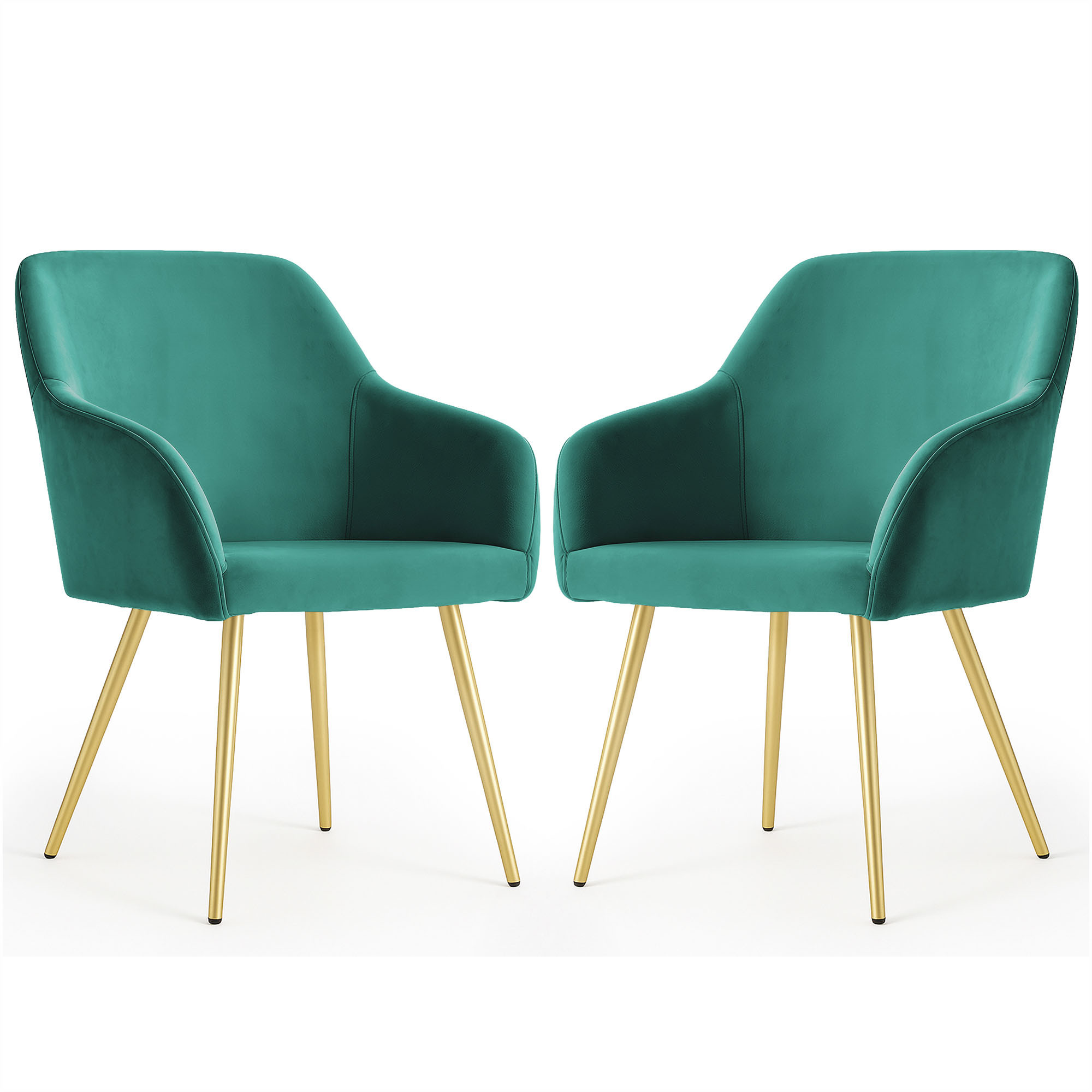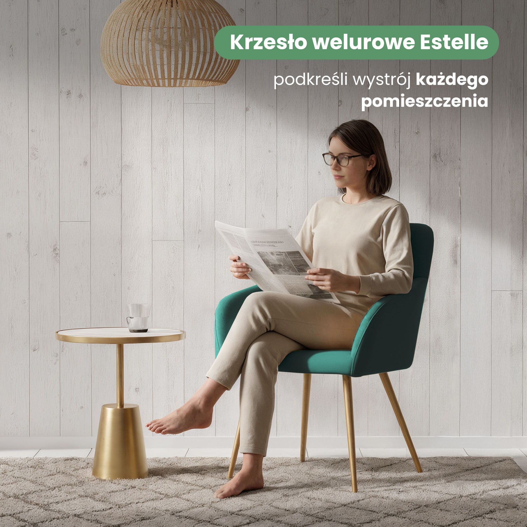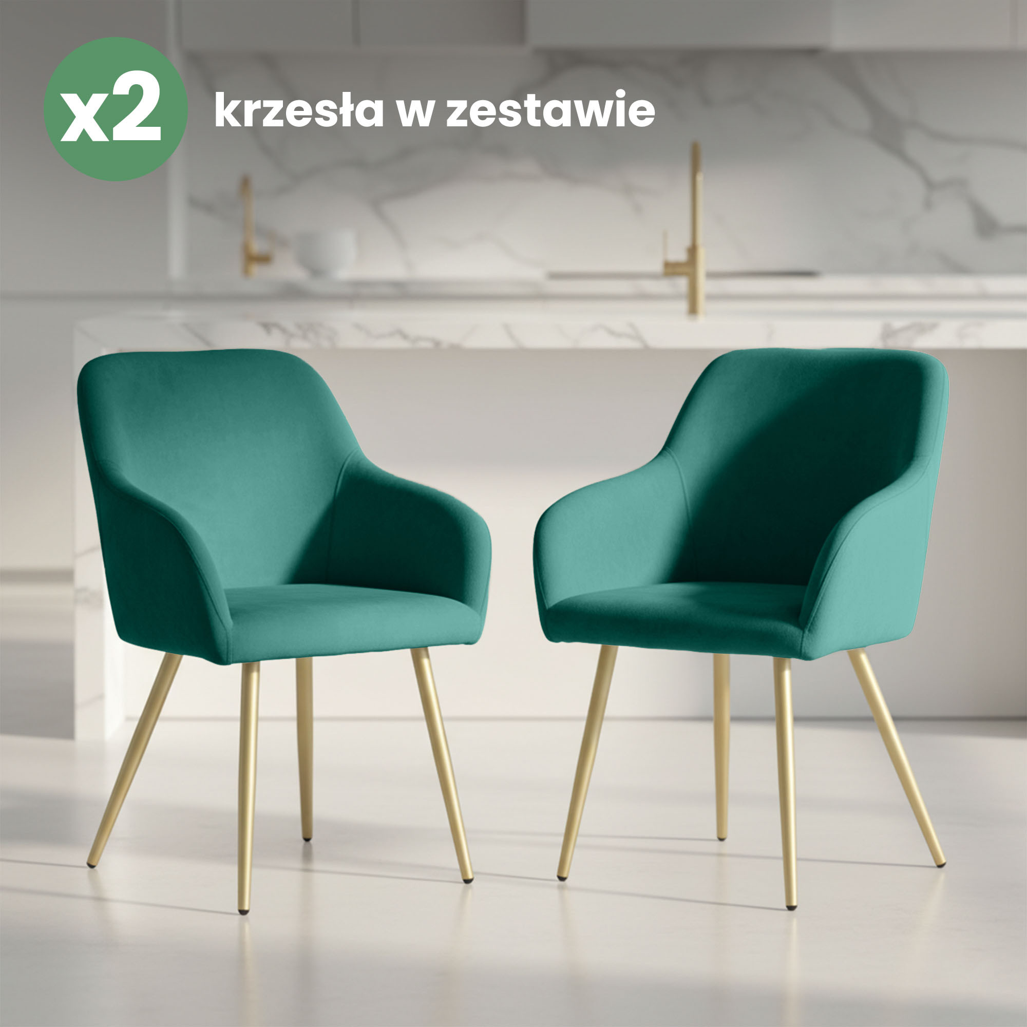 2x Welurowe krzesło tapicerowane gładkie Butelkowa Zieleń ESTELLE Złote nogi