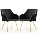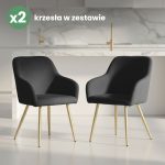 2x Welurowe krzesło tapicerowane gładkie Czarne ESTELLE Złote nogi