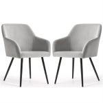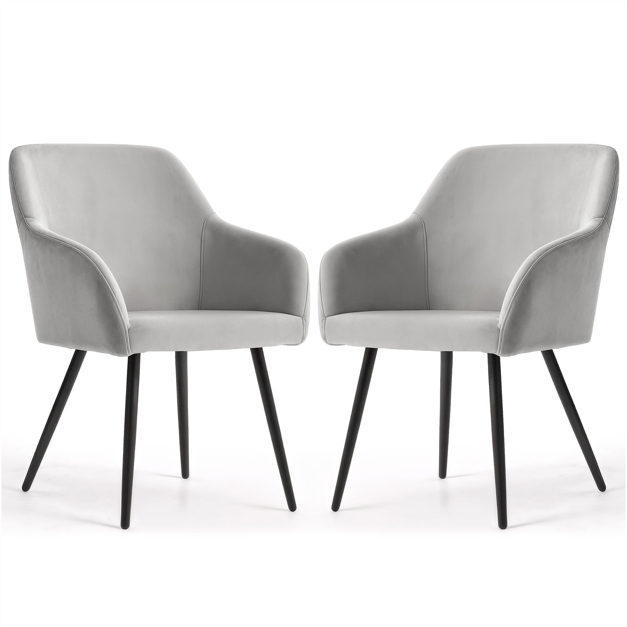 2x Welurowe krzesło tapicerowane gładkie Szare ESTELLE Czarne nogi