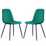 2x Welurowe krzesło tapicerowane pikowane Butelkowa Zieleń LUMO Czarne nogi