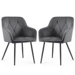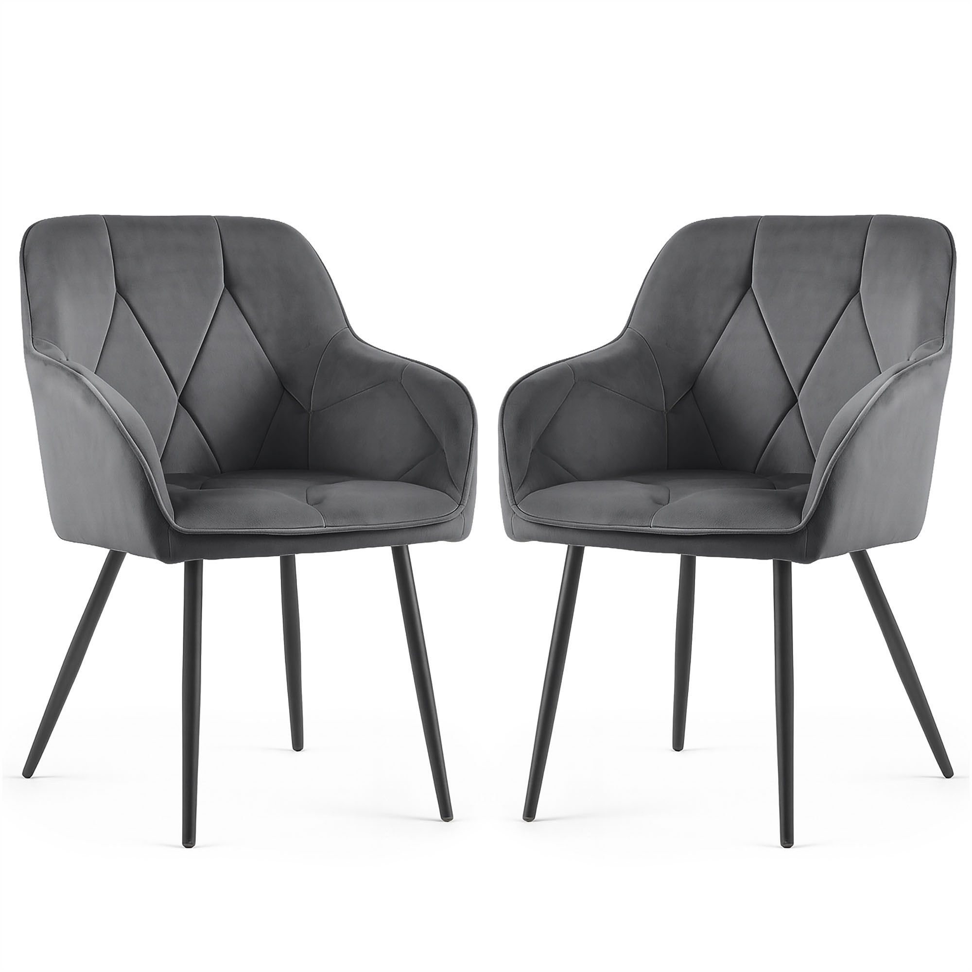 2x Welurowe krzesło tapicerowane pikowane Ciemny Grafit DIAMANTE Czarne nogi