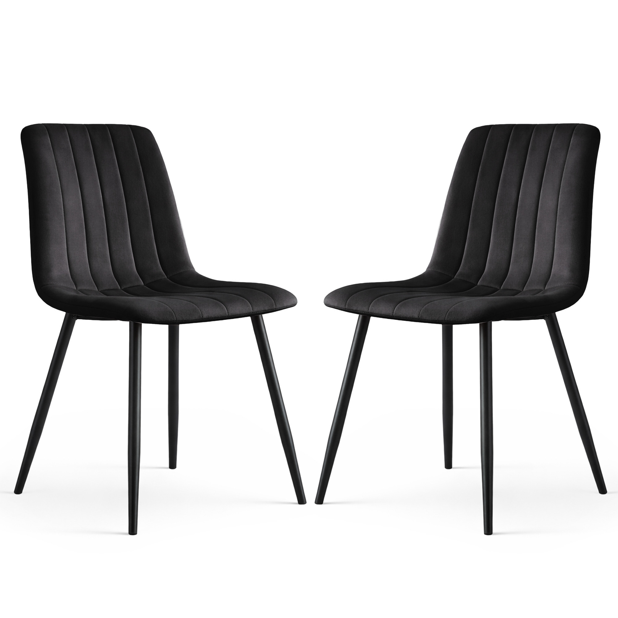 2x Welurowe krzesło tapicerowane pikowane Czarne LIVO Czarne nogi