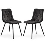 2x Welurowe krzesło tapicerowane pikowane Ciemny Grafit MILO Czarne nogi