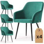 4x Welurowe krzesło tapicerowane gładkie Butelkowa Zieleń ESTELLE Czarne nogi