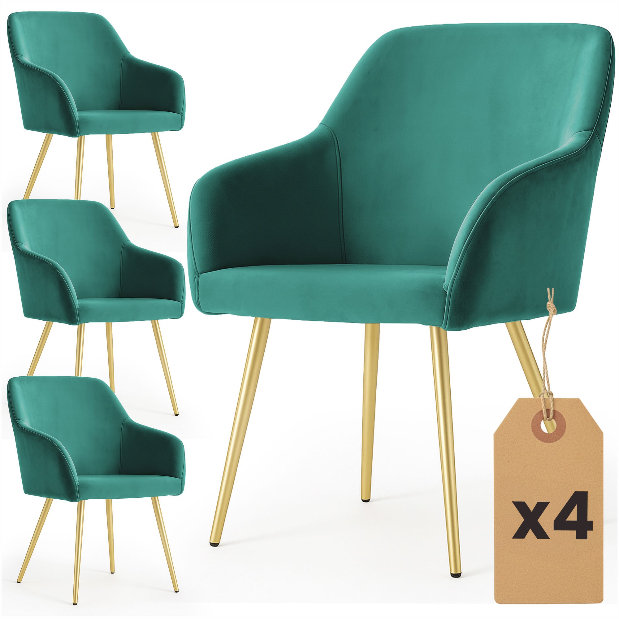 4x Welurowe krzesło tapicerowane gładkie Butelkowa Zieleń ESTELLE Złote nogi