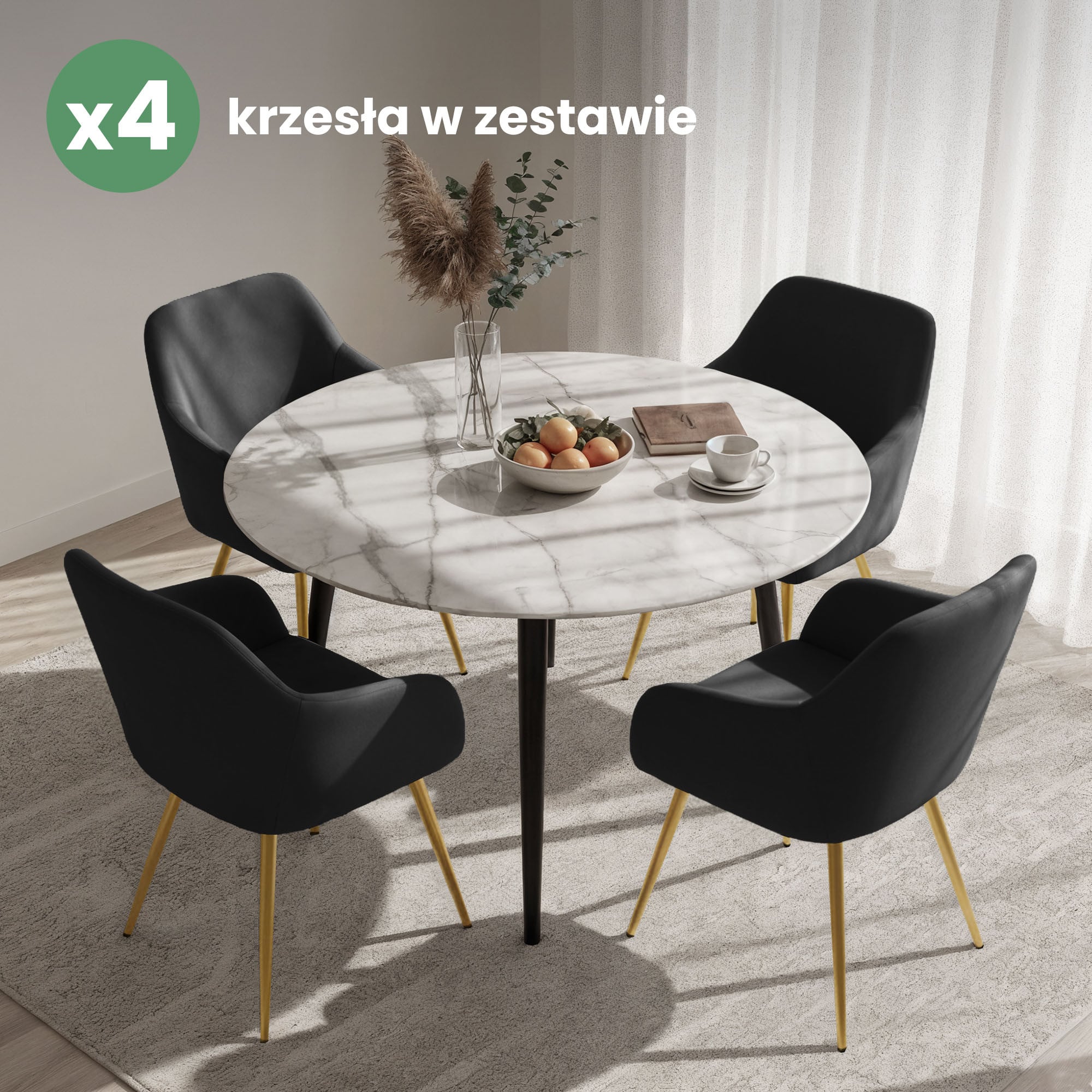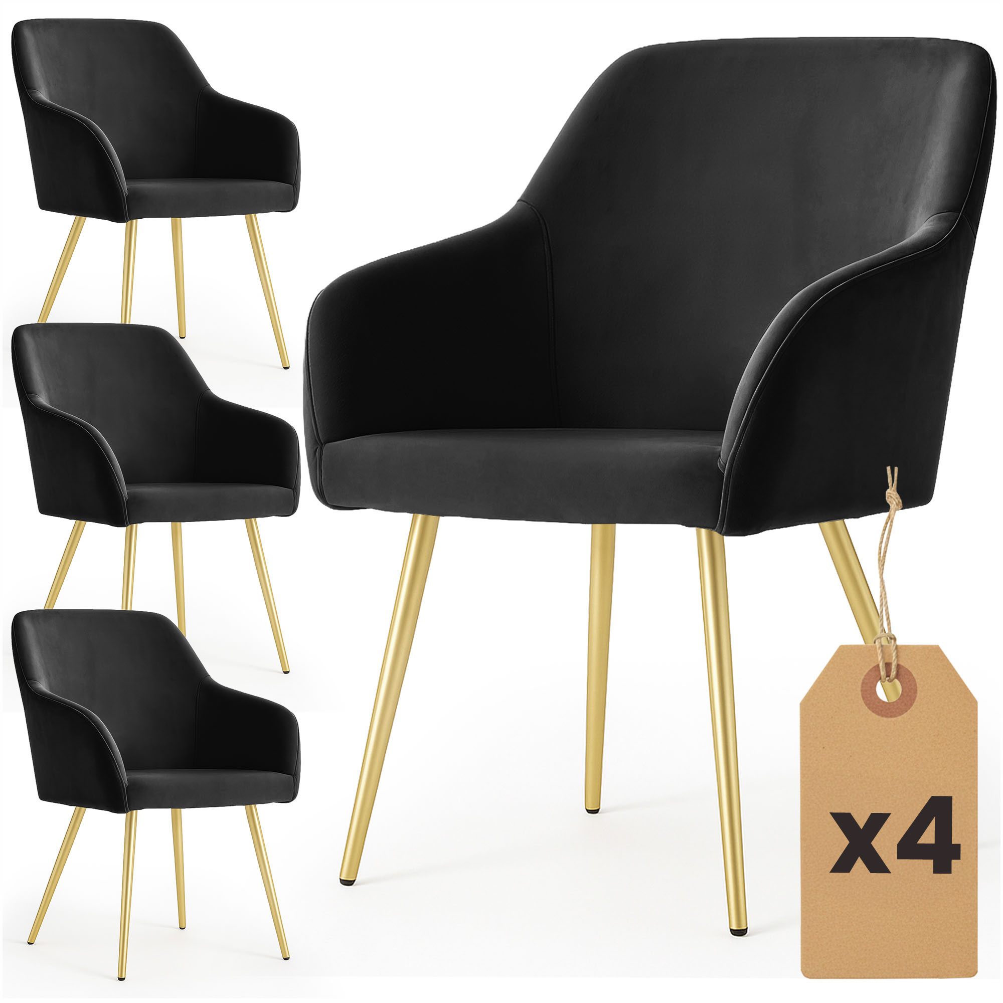 4x Welurowe krzesło tapicerowane gładkie Czarne ESTELLE Złote nogi