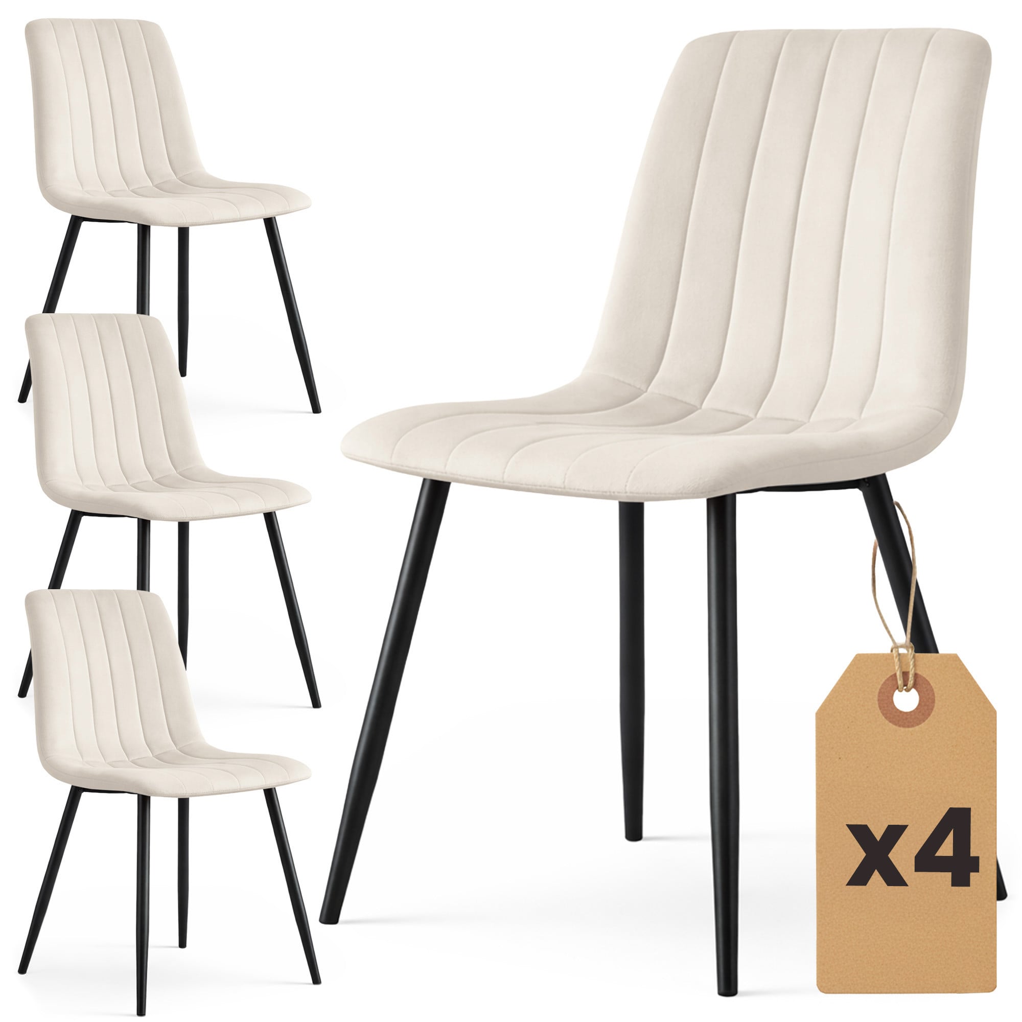 4x Welurowe krzesło tapicerowane pikowane Beżowe LIVO Czarne nogi