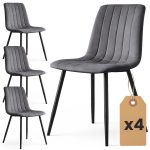4x Welurowe krzesło tapicerowane pikowane Ciemny Grafit LIVO Czarne nogi