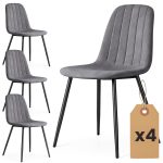 4x Welurowe krzesło tapicerowane pikowane Ciemny Grafit LUMO Czarne nogi