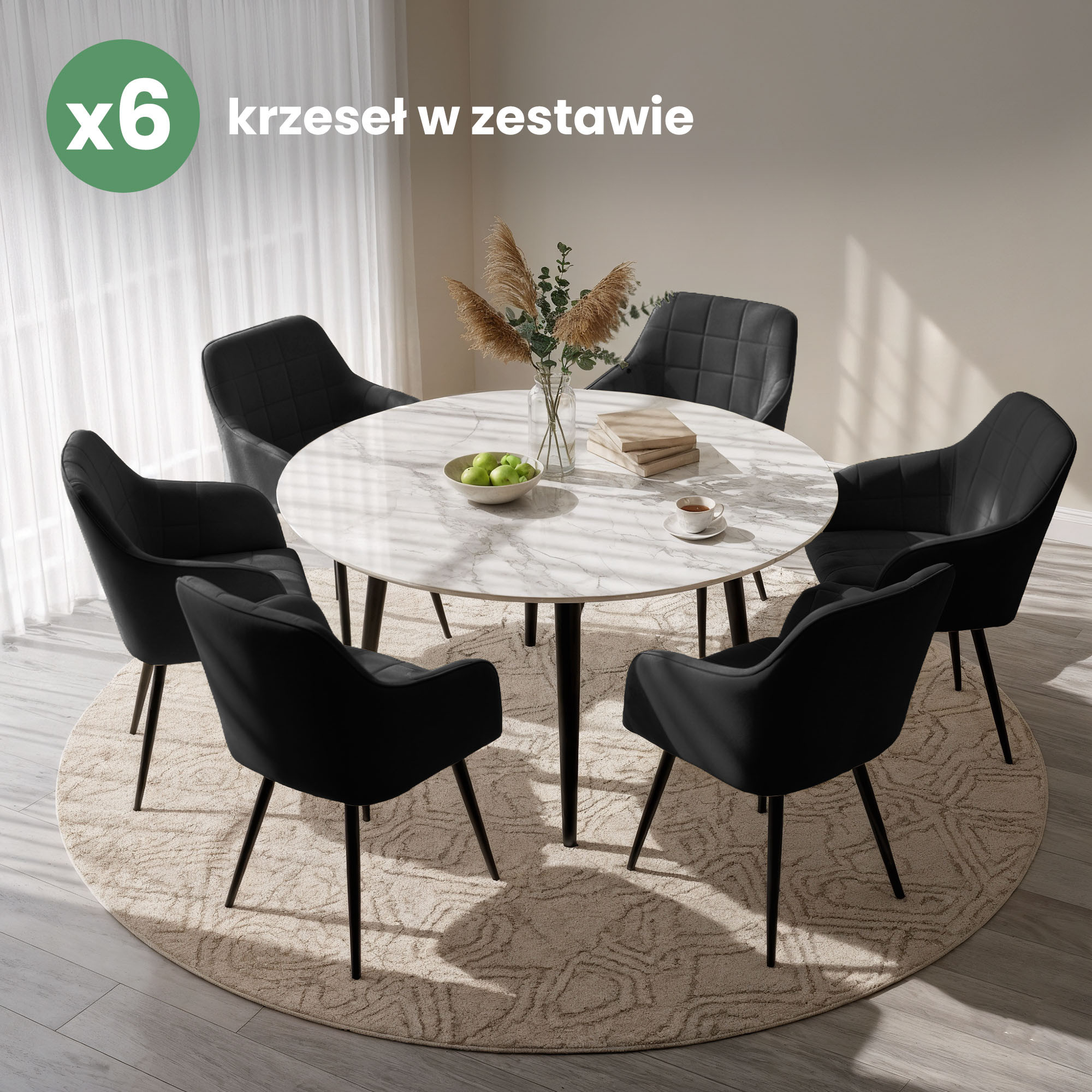 6x Krzesło tapicerowane z przeszyciami kwadratowymi Czarne LUXANO Czarne nogi