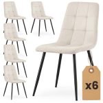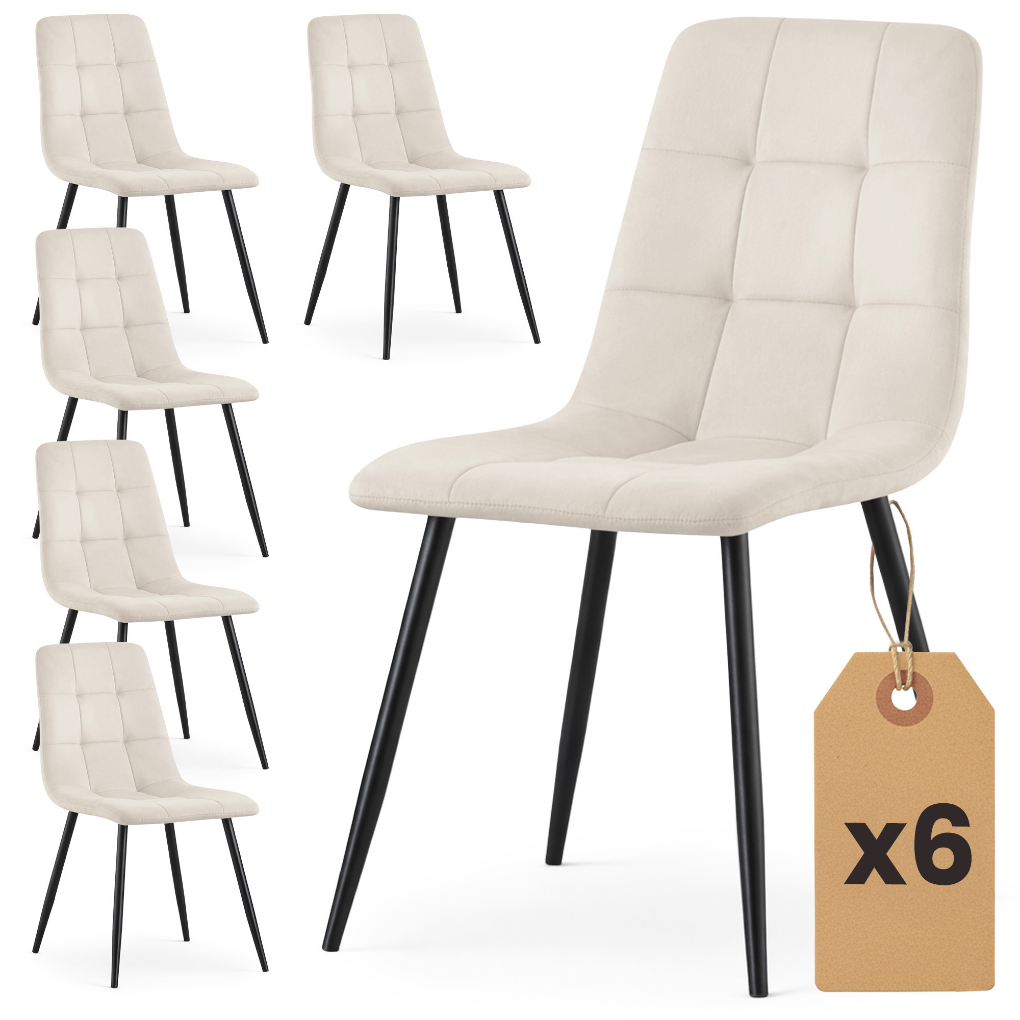 6x Welurowe krzesło tapicerowane pikowane Beżowe NERO Czarne nogi