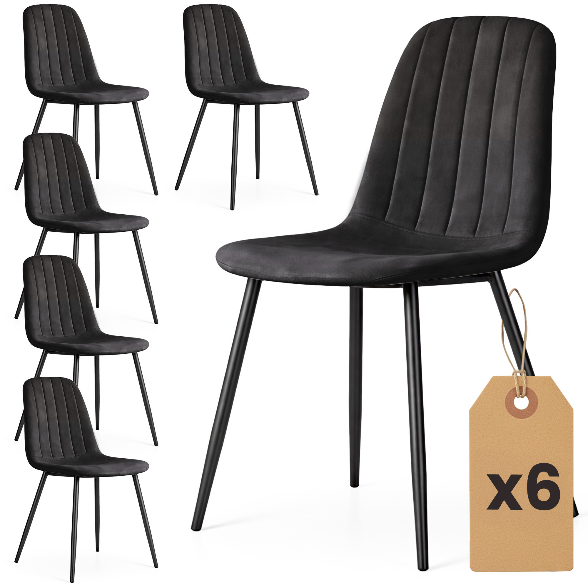 6x Welurowe krzesło tapicerowane pikowane Ciemny Grafit LUMO Czarne nogi