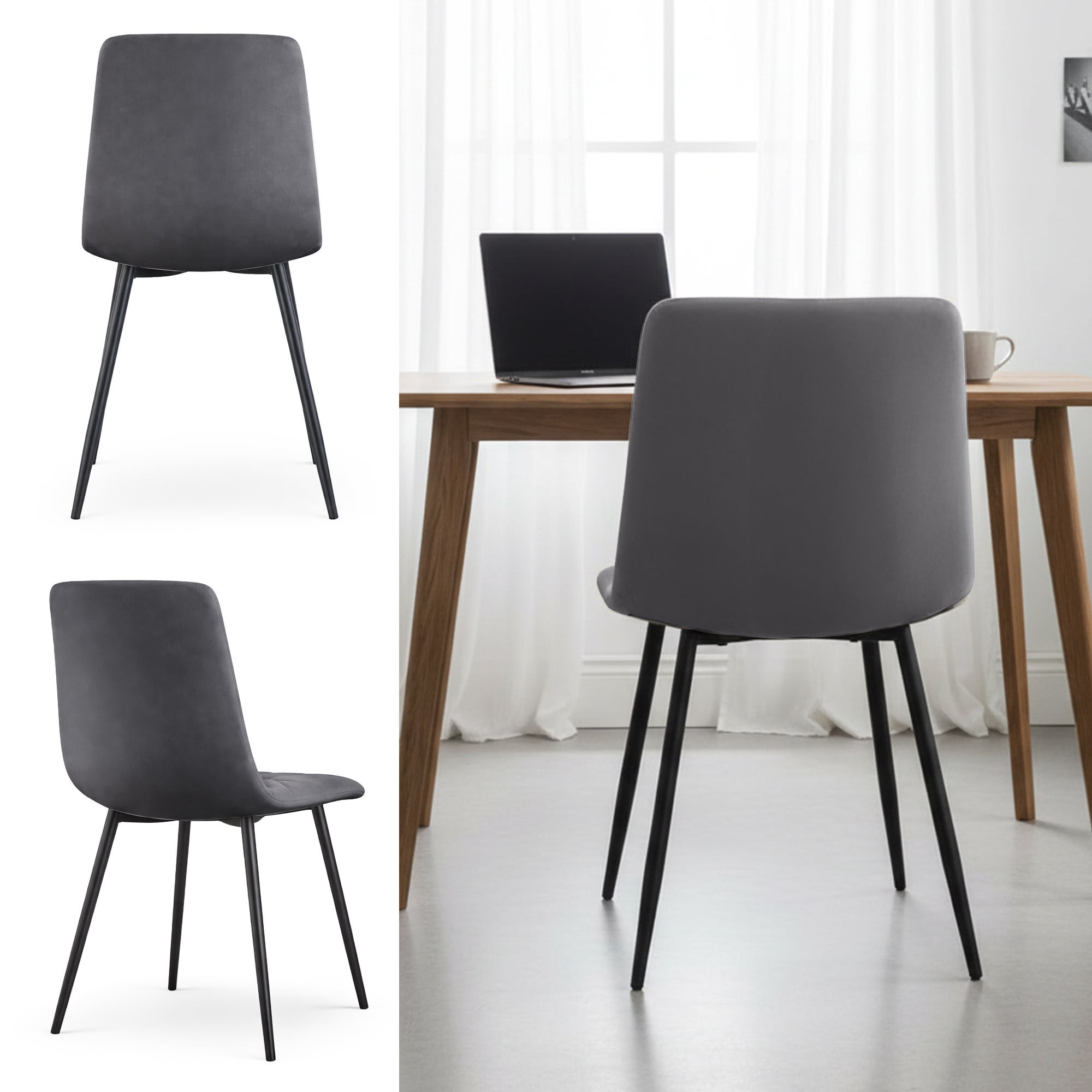 8x Welurowe krzesło tapicerowane pikowane Ciemny Grafit NERO Czarne nogi