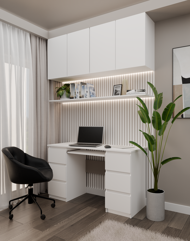 Biurko KUBA to praktyczny i estetyczny mebel zaprojektowany z myślą o codziennym użytkowaniu w domu, biurze, pracowni lub pokoju młodzieżowym. Nowoczesna kolorystyka oraz minimalistyczna forma sprawiają, że świetnie odnajdzie się zarówno w nowoczesnych, jak i klasycznych aranżacjach.