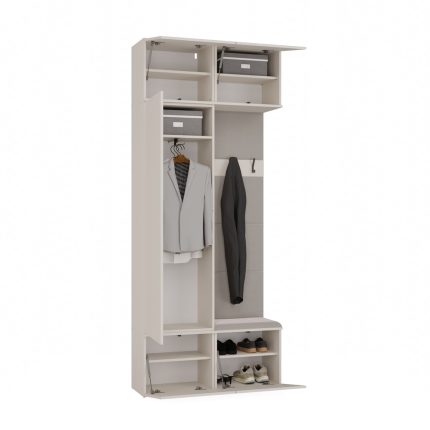 Dzięki przemyślanej, modułowej konstrukcji, każdy z elementów można swobodnie zestawiać, a całość tworzy elegancką i praktyczną przestrzeń wejściową – idealną zarówno do mieszkań, jak i domów jednorodzinnych.