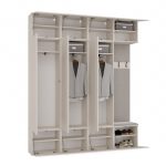 Zestaw HAGA IV 3SZ1W to propozycja dla tych, którzy potrzebują więcej przestrzeni do przechowywania, nie rezygnując z nowoczesnego wyglądu. To gotowe, kompletne rozwiązanie do przedpokoju, łączące 3 pojemne szafy z drążkiem i półkami oraz moduł z wieszakiem, tapicerowanym siedziskiem i szafkami.