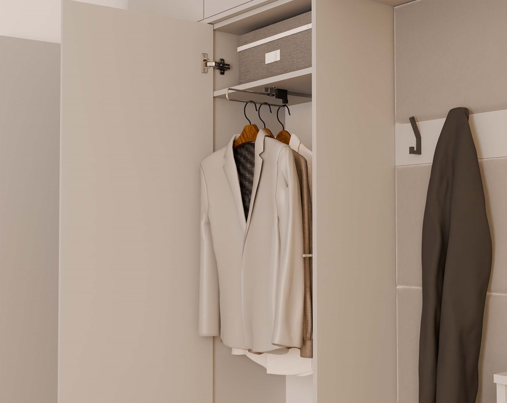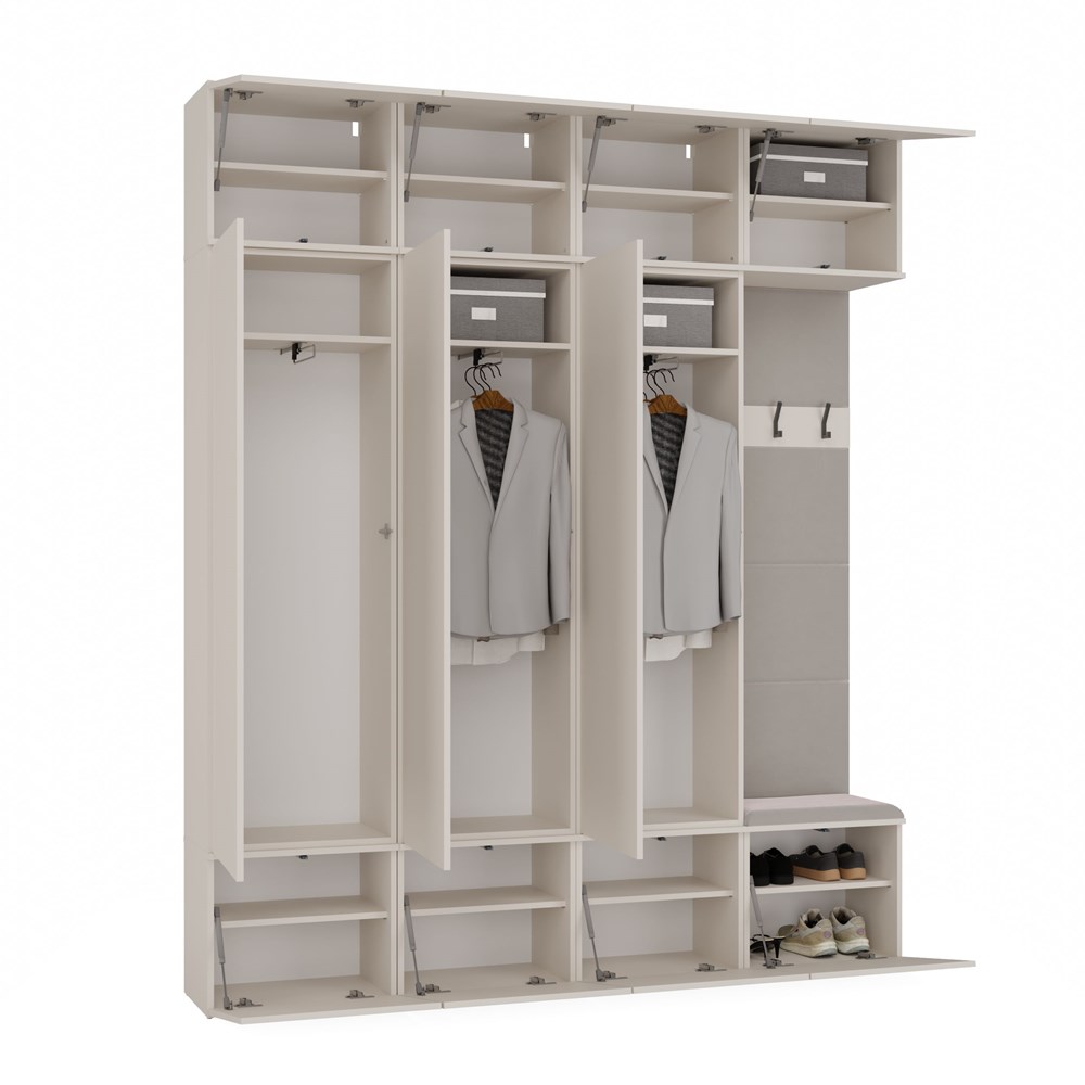 Dzięki przemyślanej, modułowej konstrukcji, każdy z elementów można swobodnie zestawiać, a całość tworzy elegancką i praktyczną przestrzeń wejściową – idealną zarówno do mieszkań, jak i domów jednorodzinnych.