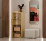 Dzięki pojemnym półkom ukrytym za gładkimi drzwiami, komoda zapewnia mnóstwo miejsca do przechowywania i ułatwia utrzymanie porządku w każdej przestrzeni.