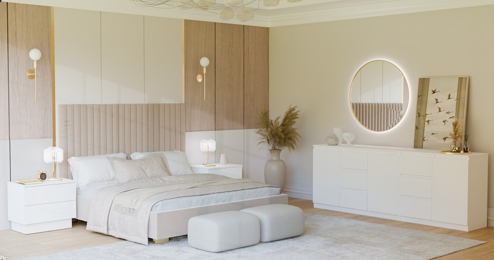 - Bezuchwytowe fronty szuflad oraz drzwi zapewniają wygodne użytkowanie i podkreślą modernistyczny charakter wnętrza.