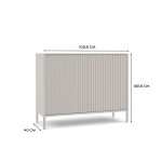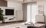 Komoda KAMARO 2D SLIM KASZMIR to połączenie estetyki i funkcjonalności, które doskonale odnajdzie się w salonie, pokoju gościnnym, sypialni czy gabinecie. Dzięki ryflowanemu frontowi drzwi (przypominającym lamele), mebel zyskuje nowoczesny i oryginalny wygląd, idealnie pasujący do współczesnych wnętrz.