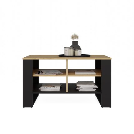Stolik Kawowy Z Półką Pod Blatem SQUARE DĄB ARTISAN CZARNY Ława Do Salonu Pokoju