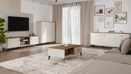 Stolik Kawowy Ława POINT 2S 110 Kaszmir Beż Dąb Castello 2 Szuflady Do Salonu