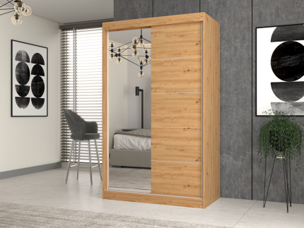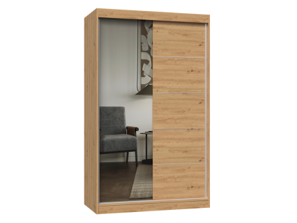SZAFA AVA 150 CM LUSTRO 2 SZUFLADY RYFLOWANY FRONT DĄB EVOKE KASZMIR BEŻ