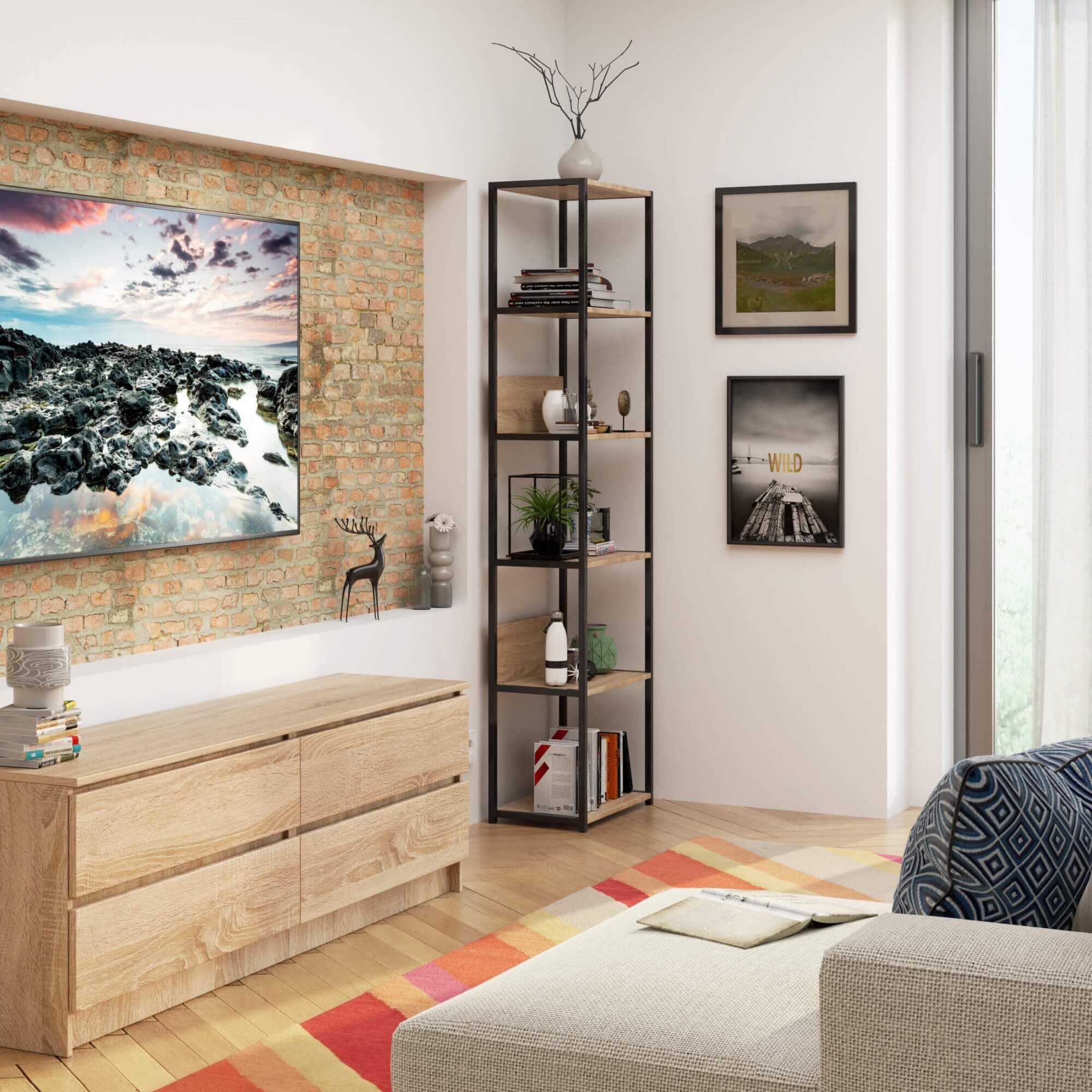 REGAŁ INDUSTRIALNY 500 CZARNY/DĄB ARTISAN