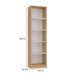 Regał R50 to stylowe i praktyczne rozwiązanie do przechowywania książek, segregatorów, dekoracji oraz materiałów biurowych. Połączenie ciepłego odcienia dębu artisan z kontrastującymi białymi półkami nadaje meblowi nowoczesny i elegancki charakter. Doskonale sprawdzi się zarówno w biurze, salonie, pokoju dziecka, jak i w domowej biblioteczce.