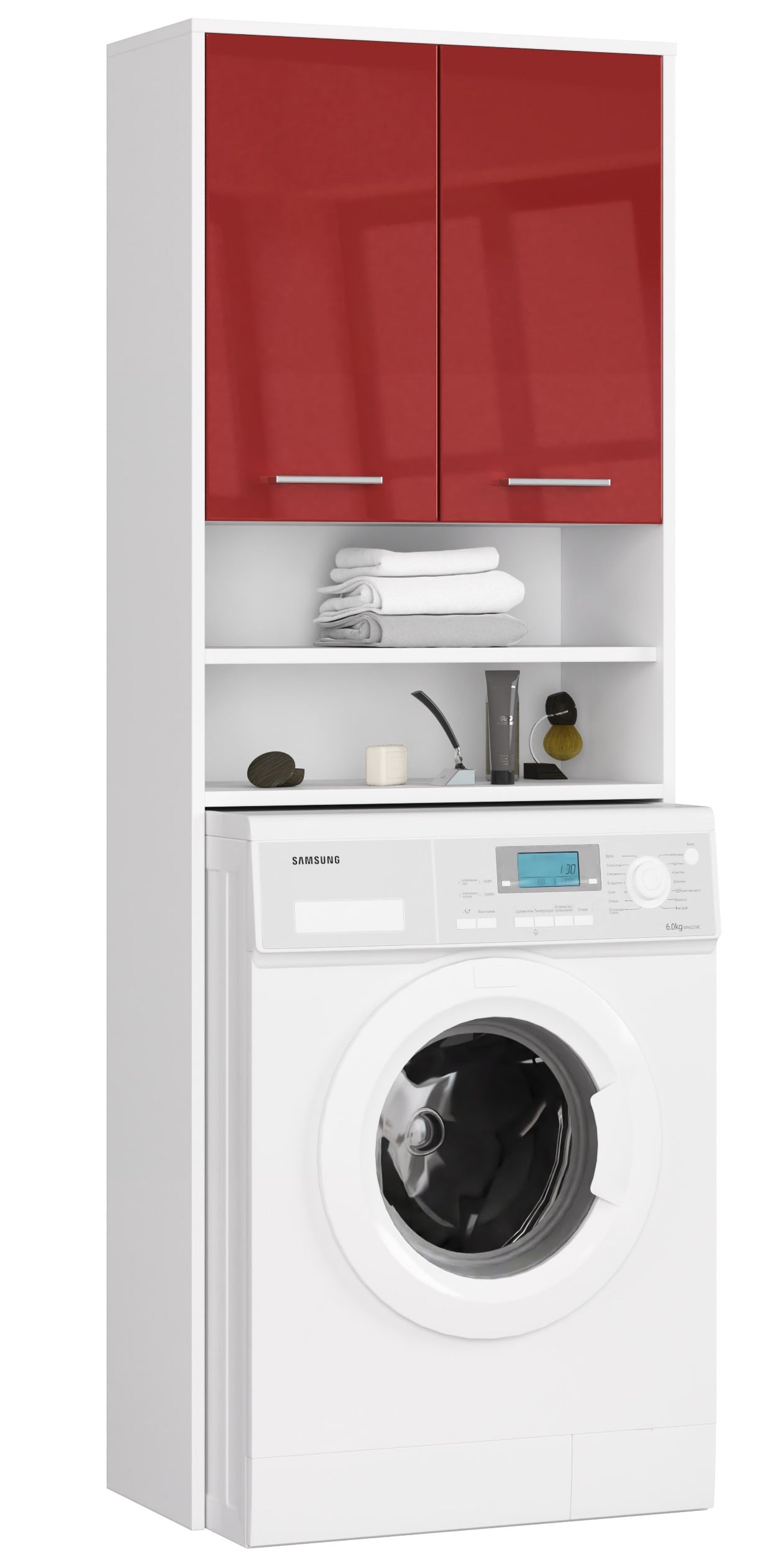 SŁUPEK REGAŁ ŁAZIENKOWY FIN NAD PRALKĘ BIAŁY / CZERWONY POŁYSK