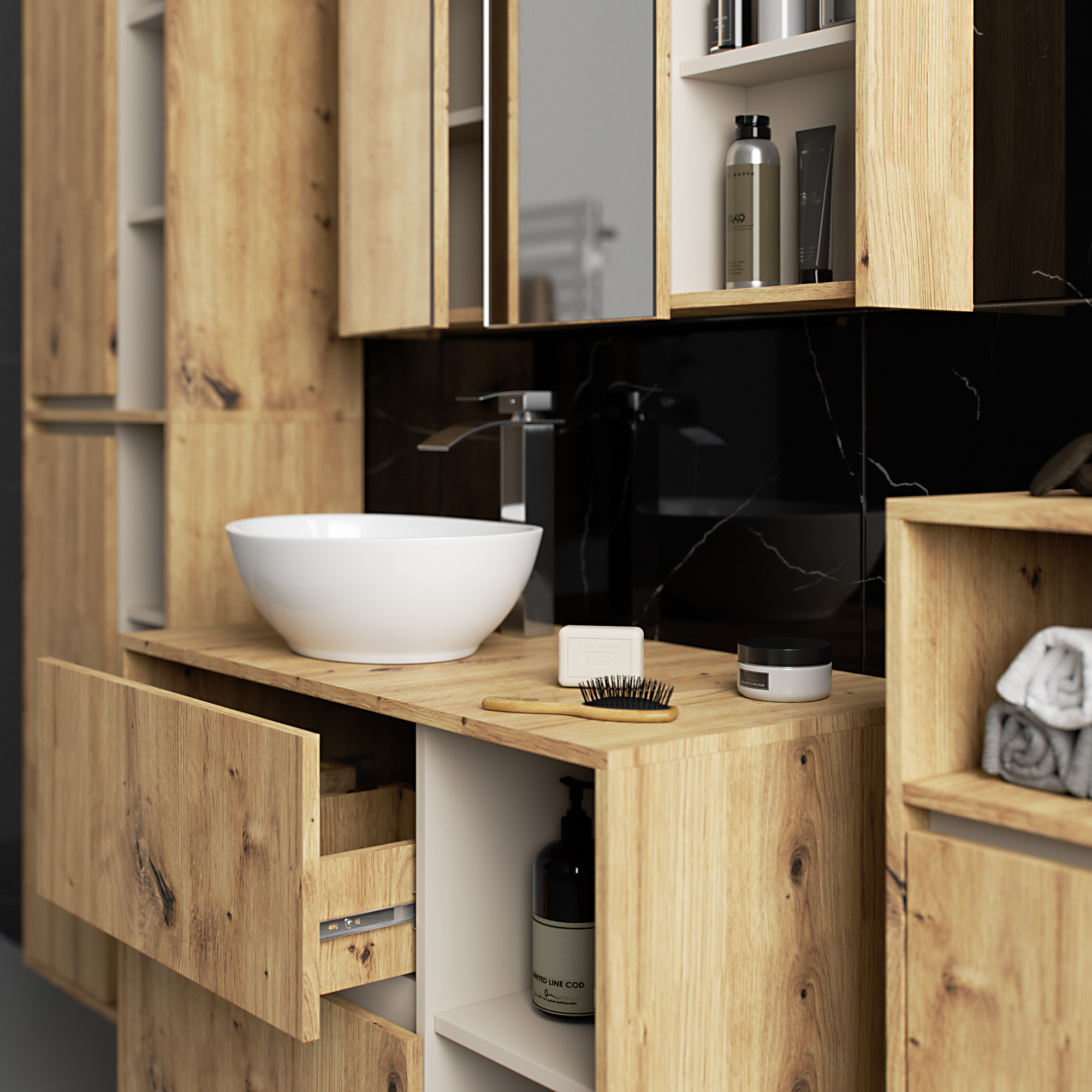 Szafki łazienkowe świetnie uzupełniają wyposażenie łazienki, zapewniając niezbędne miejsce na wszelkie kosmetyki i detergenty oraz nadając łazience określony styl. Pojemne szafki ułatwiają zachowanie porządku w pomieszczeniu, co korzystnie wpływa na estetykę wnętrza. Kolekcja VAMI wyróżnia się przykuwającą uwagę stylową kolorystyką – korpus oraz fronty mają taką samą barwę, natomiast kolor wewnętrzny jest inny.