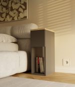- Szuflada oraz otwarta półka – idealne do przechowywania najpotrzebniejszych rzeczy, takich jak telefon, ładowarka, książka czy okulary.