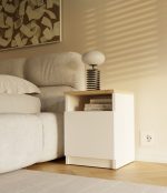 Blat szafki to idealne miejsce na lampkę nocną, budzik lub dekoracyjne dodatki. Klasyczny kolor mebla dodaje wnętrzu świeżości i lekkości, jednocześnie pasując zarówno do nowoczesnych, jak i tradycyjnych aranżacji.