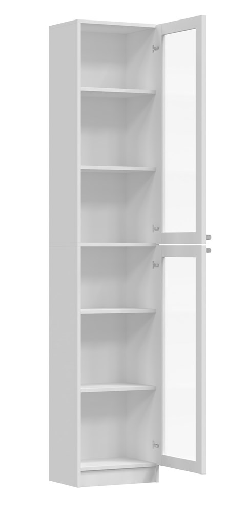 Za przeszklonymi drzwiami znajduje się 6 przestronnych półek, które umożliwiają efektywne zorganizowanie i uporządkowanie różnych przedmiotów – od książek i dokumentów po dekoracje.