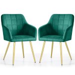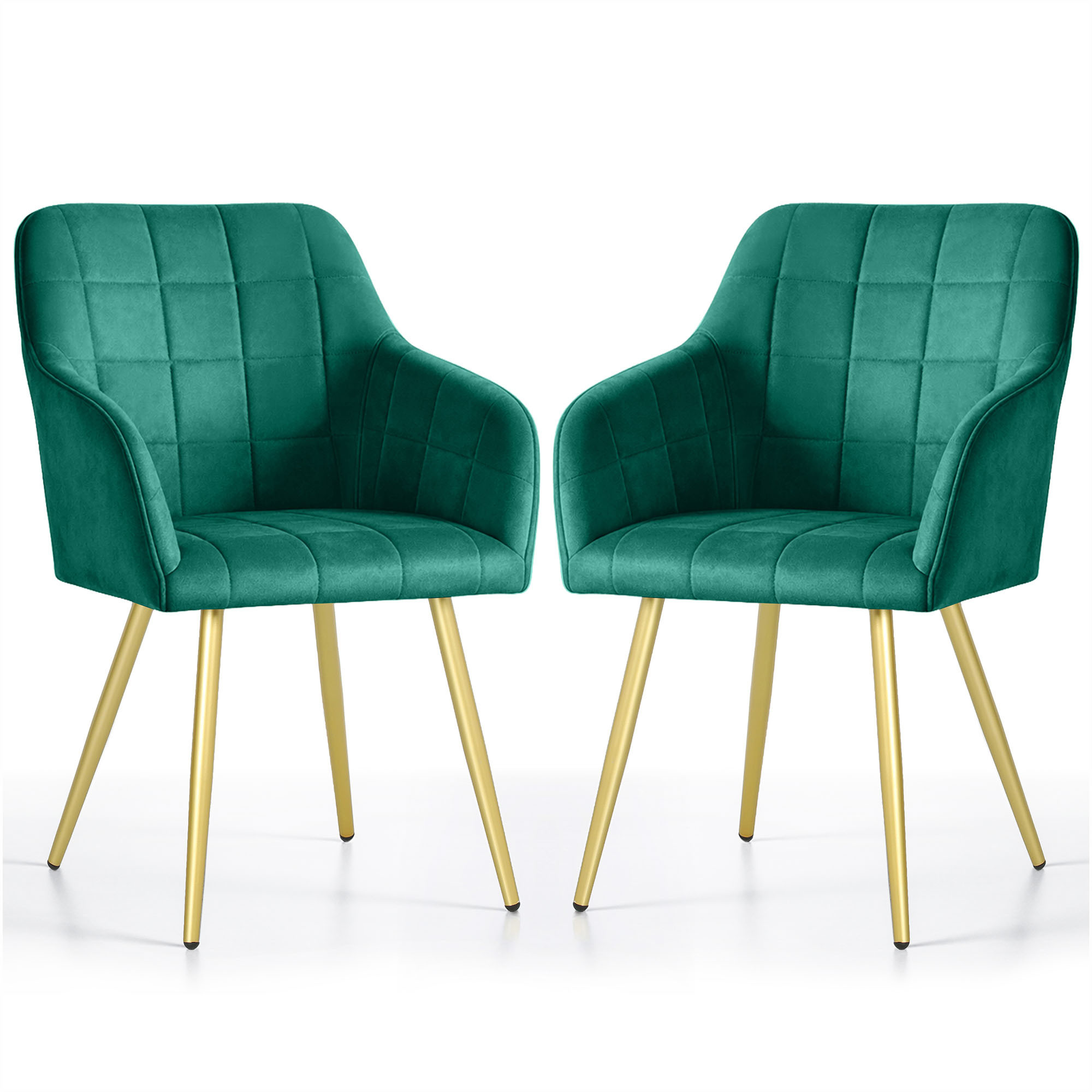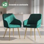 2x Krzesło tapicerowane z przeszyciami kwadratowymi Butelkowa Zieleń LUXANO Złote nogi