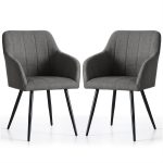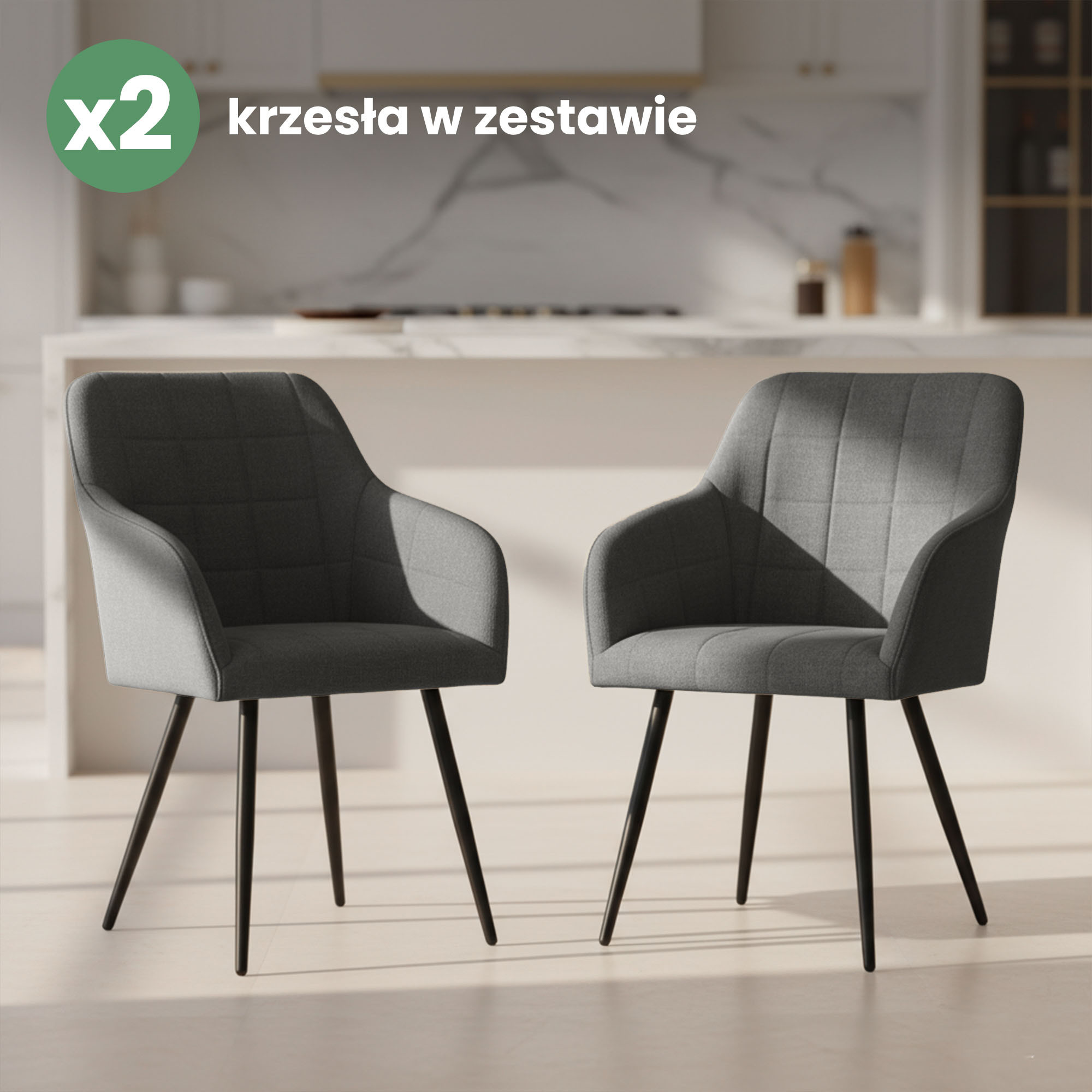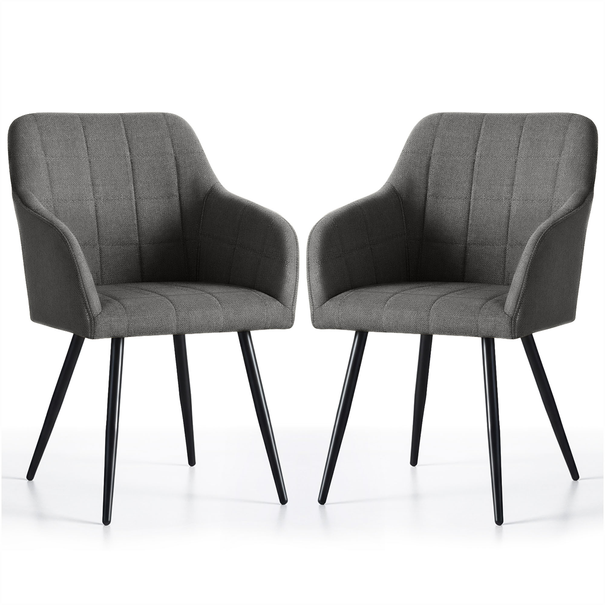 2x Krzesło tapicerowane z przeszyciami kwadratowymi Ciemny Grafit LUXANO Czarne nogi tkanina Lumos