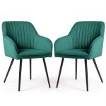 2x Welurowe krzesło tapicerowane z przeszyciami Butelkowa Zieleń FLORENCE Czarne nogi