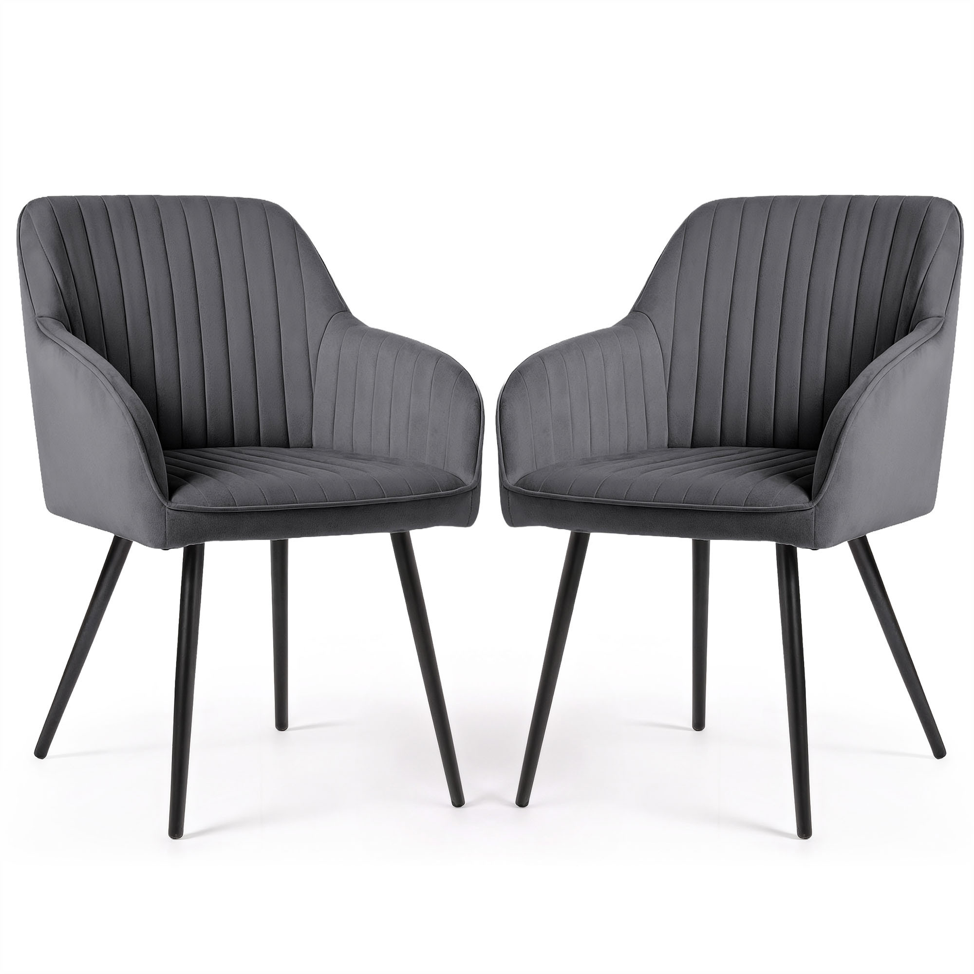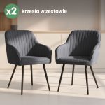 2x Welurowe krzesło tapicerowane z przeszyciami Ciemny Grafit FLORENCE Czarne nogi