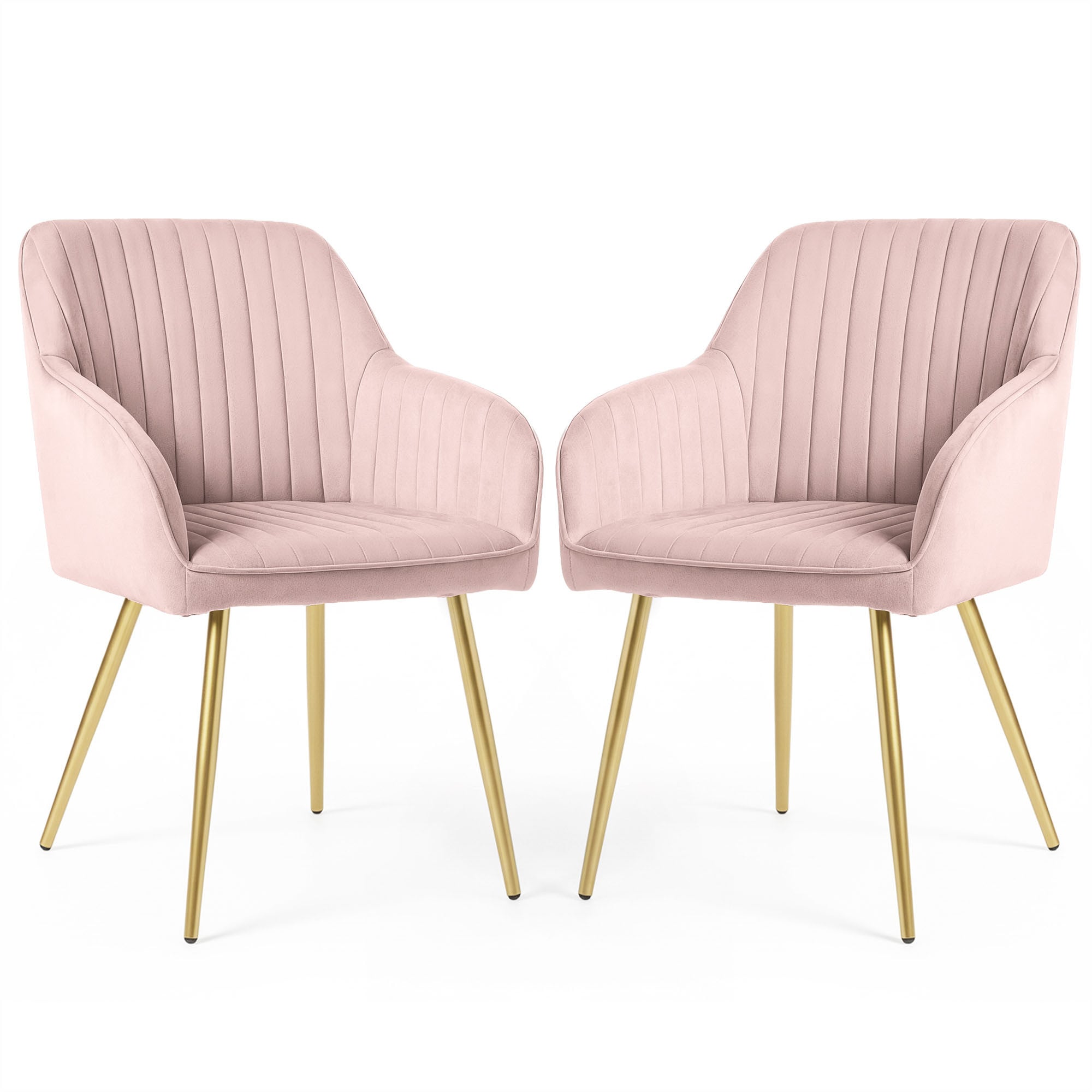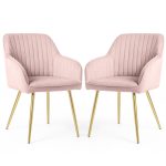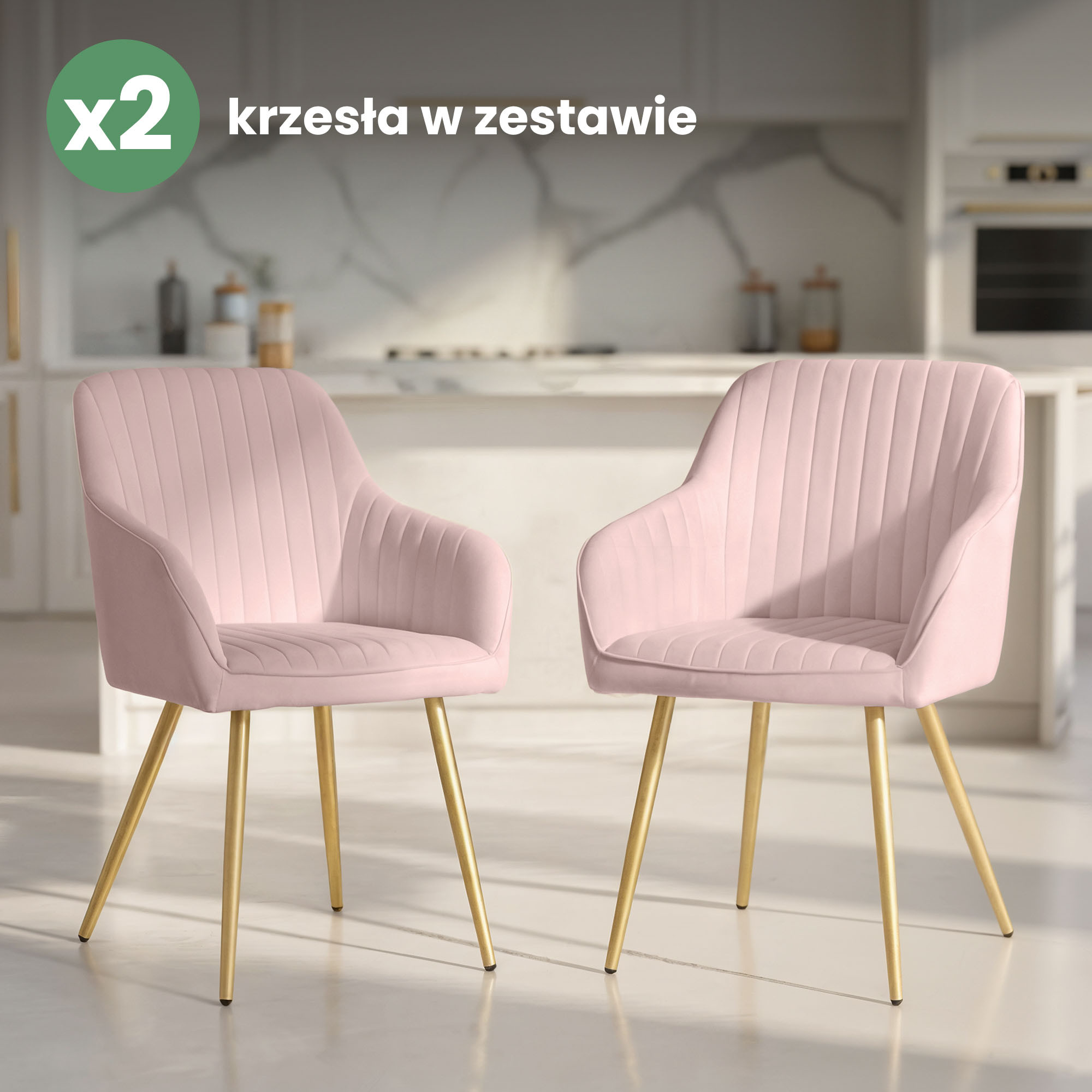 2x Welurowe krzesło tapicerowane z przeszyciami Pudrowy Róż FLORENCE Złote nogi