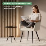 Krzesła tapicerowane łączą estetyczny wygląd z komfortem użytkowania i dobrze wpisują się w różne style wnętrz. Ich uniwersalna forma sprawia, że są odpowiednie do jadalni, salonu lub przestrzeni biurowej. Dostępne są w dwóch wariantach materiałowych – w tkaninie Lumos lub w welurze.