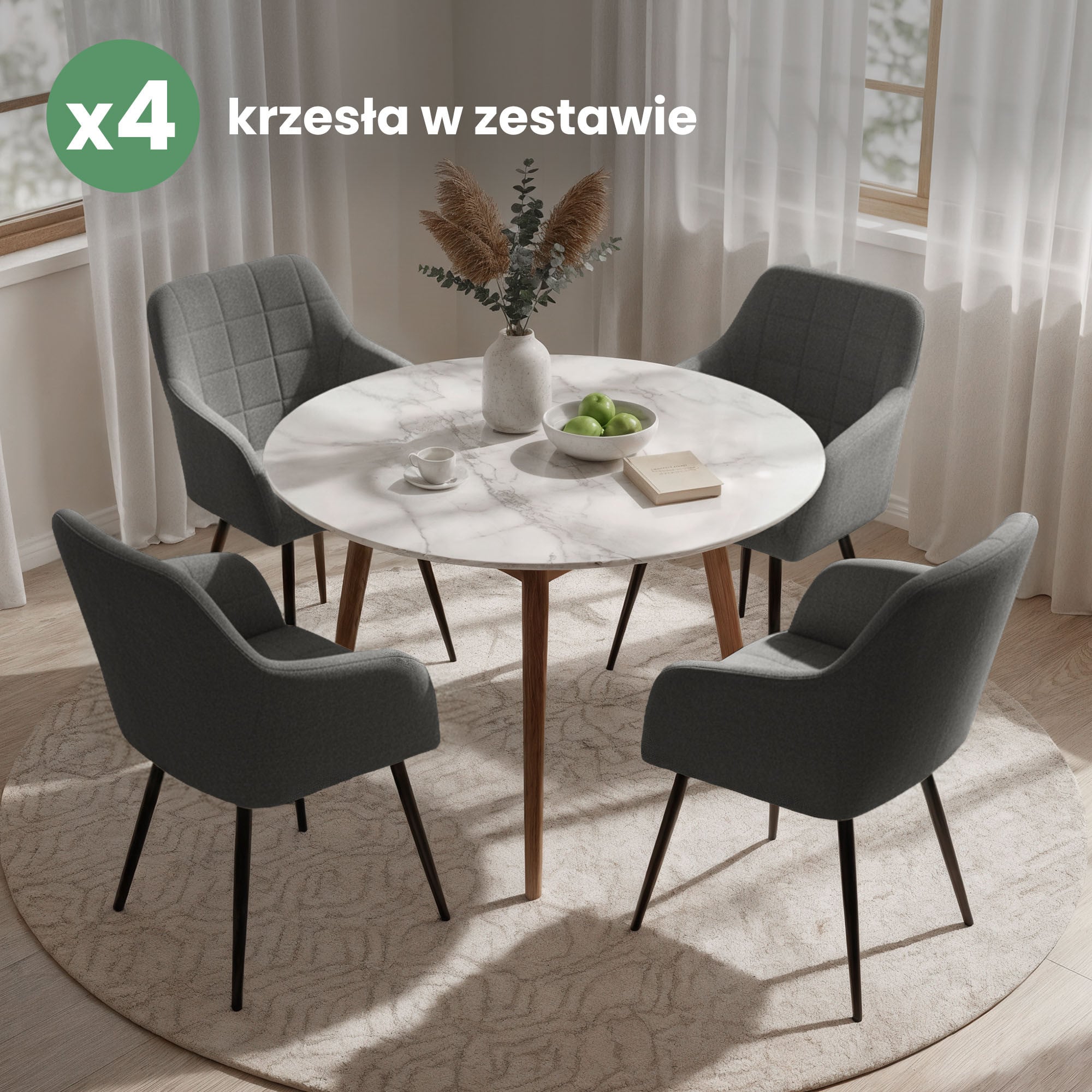 4x Krzesło tapicerowane z przeszyciami kwadratowymi Ciemny Grafit LUXANO Czarne nogi tkanina Lumos
